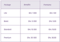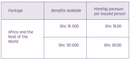 - Packages and premiums depend on the location of the insured person and are as follows:
